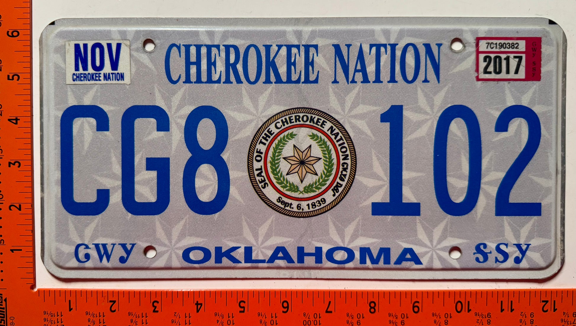 2017 Cherokee Nation, Oklahoma #CG8 102 Passenger License Plate