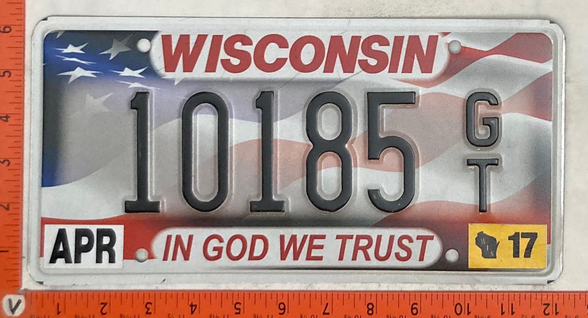 2017 Wisconsin #10185 G/T Passenger License Plate