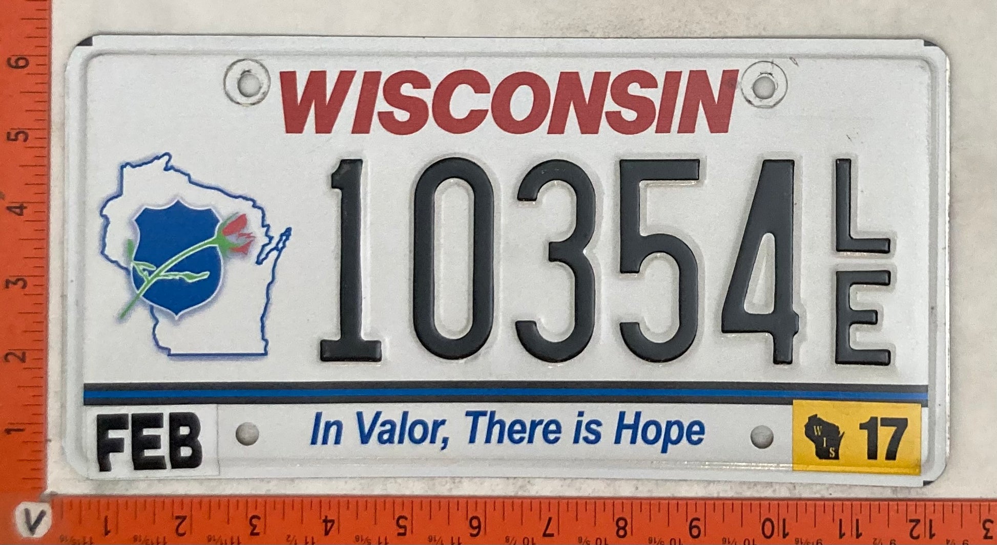 2017 Wisconsin #10354 L/E Passenger License Plate
