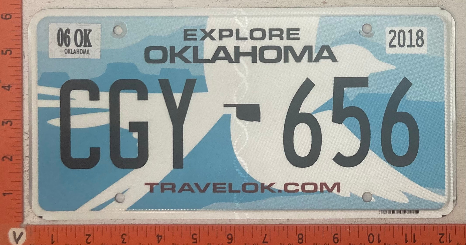 2018 Oklahoma #CGY-656 Passenger License Plate