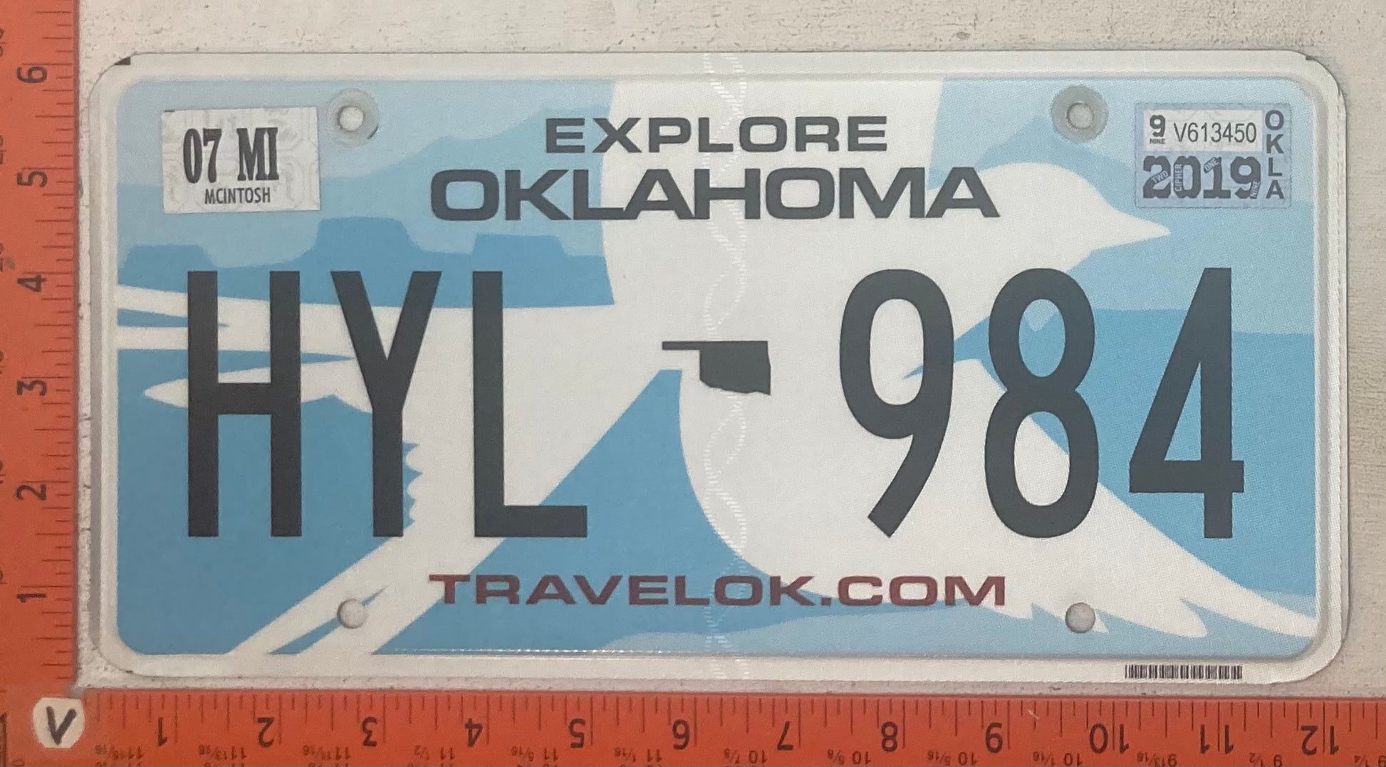 2019 Oklahoma #HYL-984 Passenger License Plate