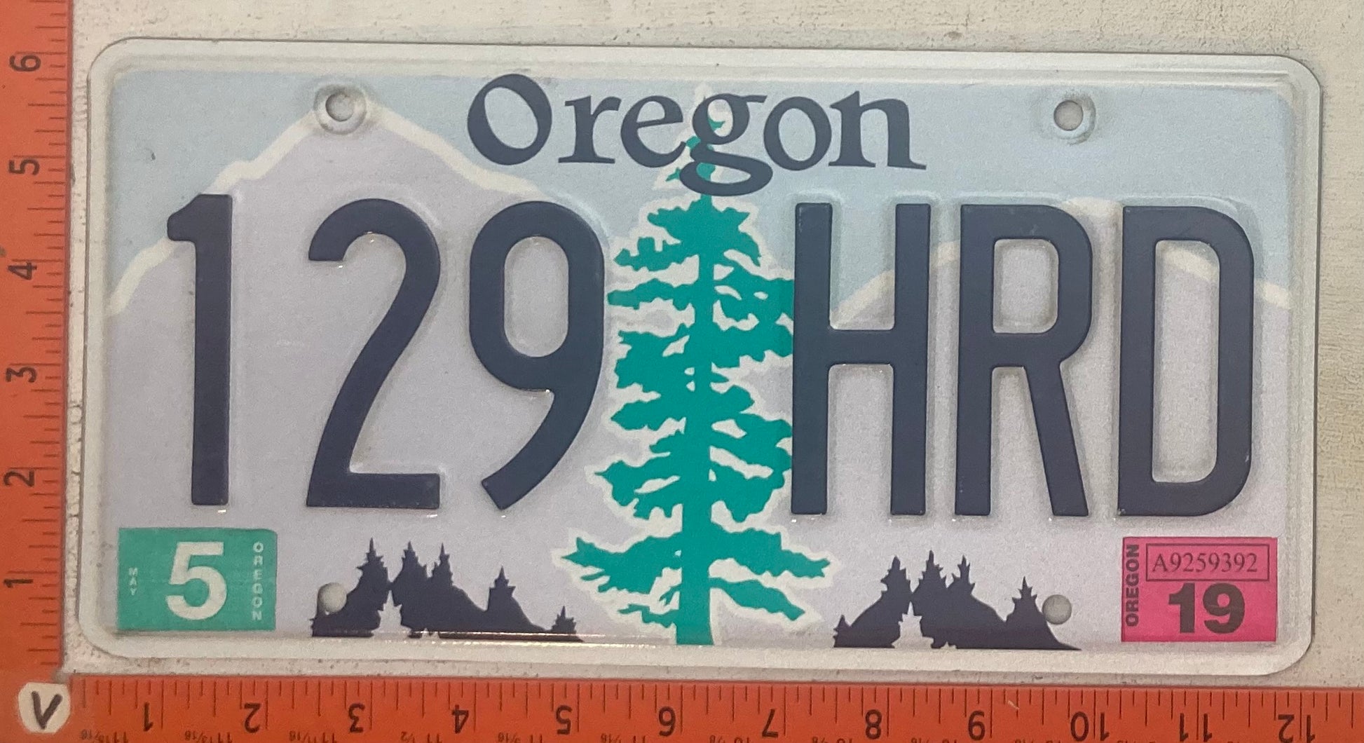 2019 Oregon #129 HRD Passenger License Plate