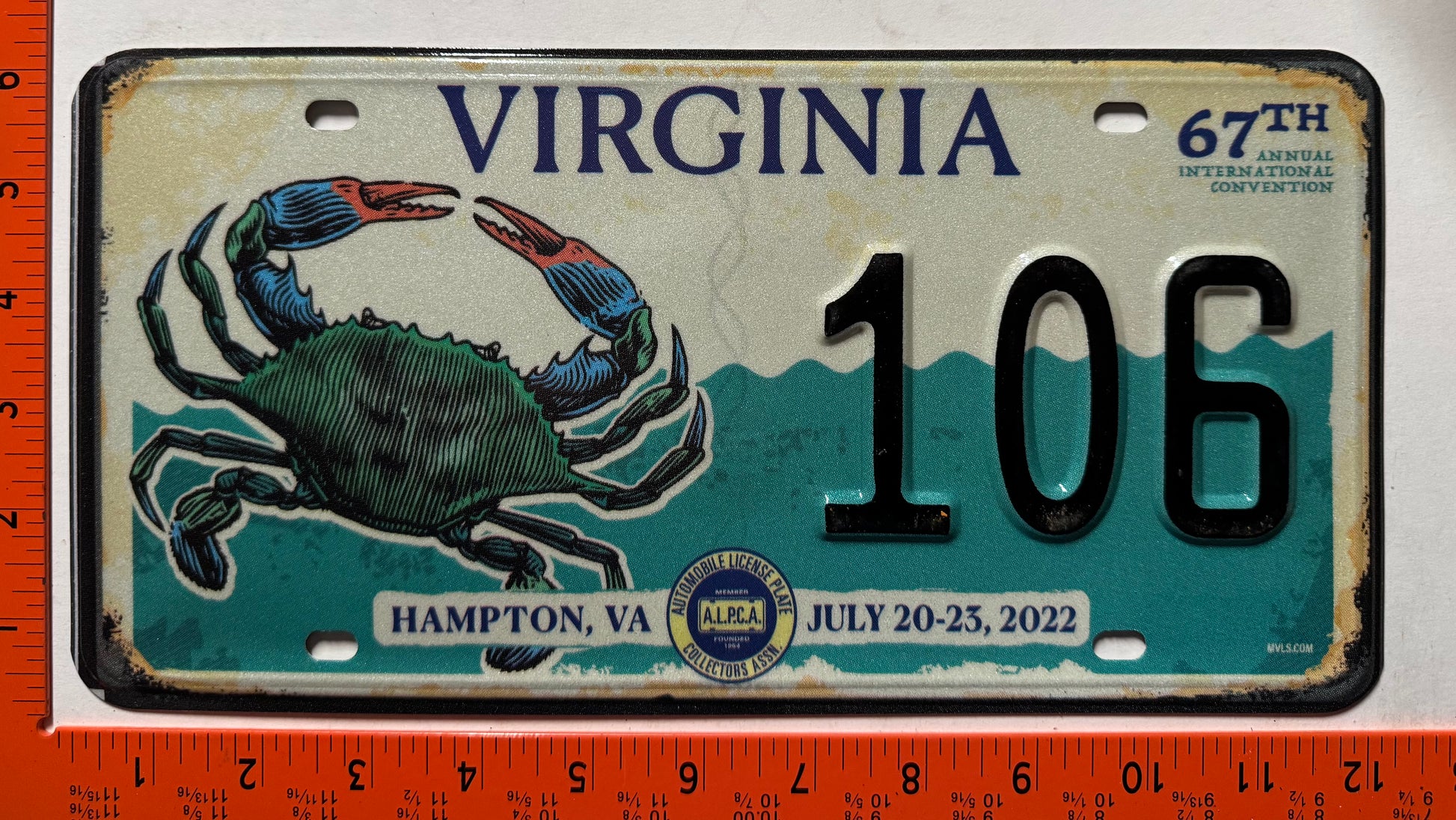 2022 ALPCA Convention, Hampton, VA #106 Souvenir License Plate
