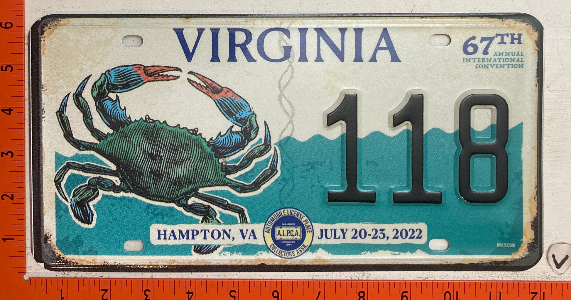 2022 ALPCA Convention, Hampton, Virginia #118 Souvenir License Plate