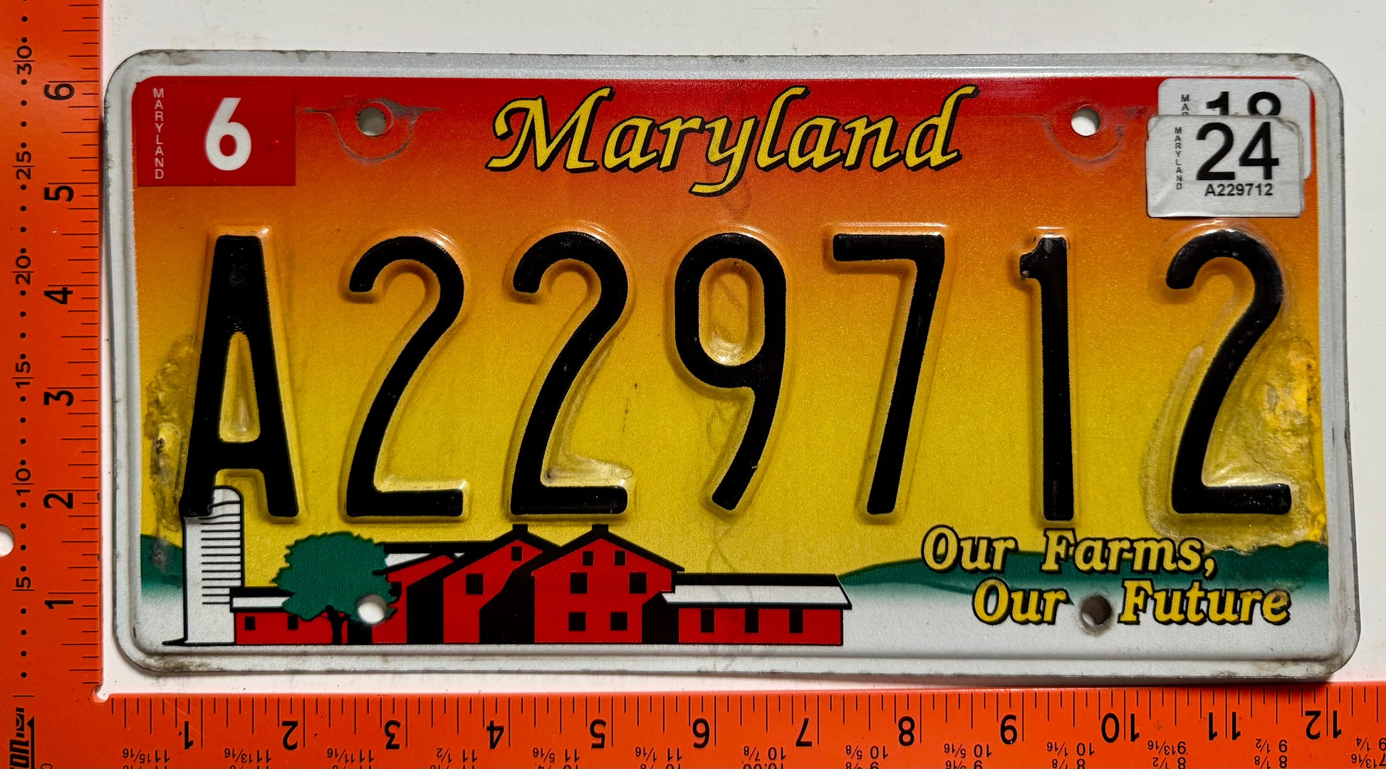 2024 Maryland #A229712 Agriculture Passenger License Plate