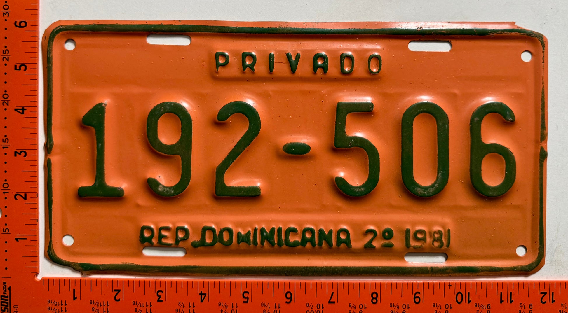 2nd half 1981 Dominican Republic #192-506 Passenger License Plate
