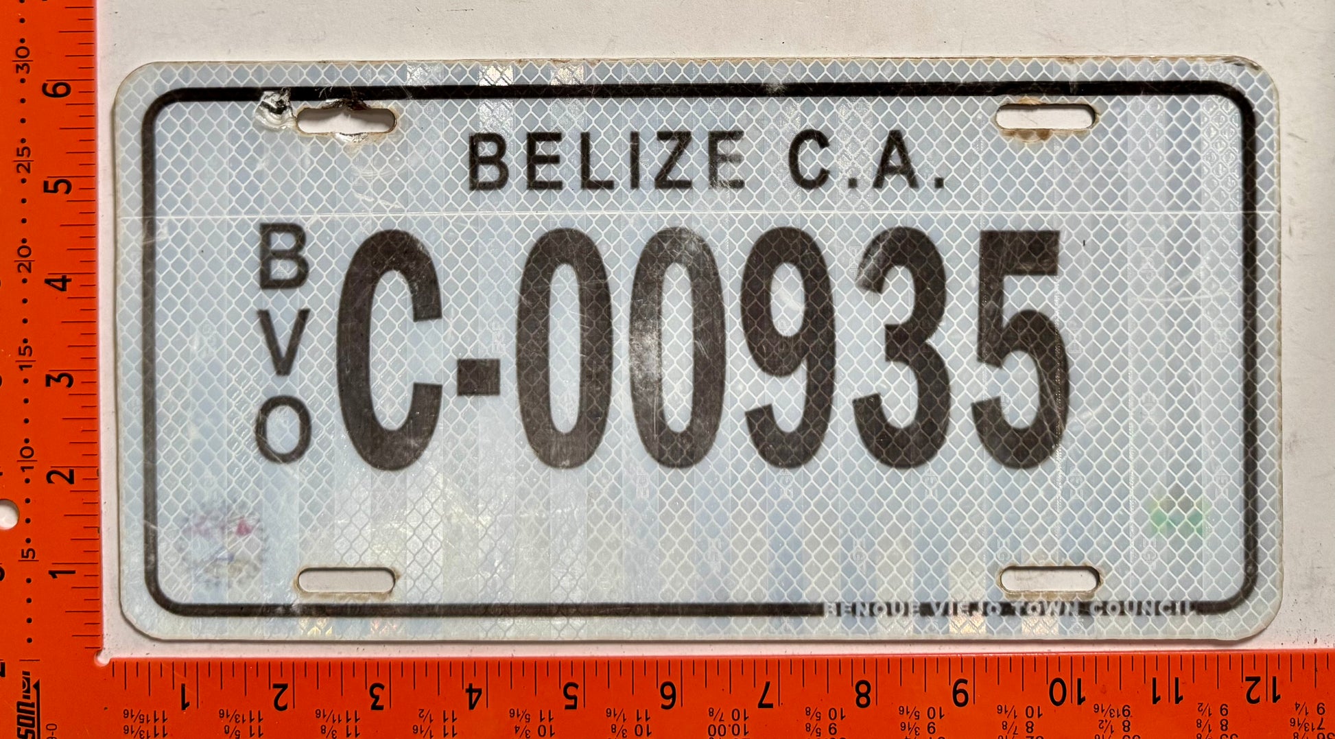 undated Belize #C-00935 Passenger License Plate