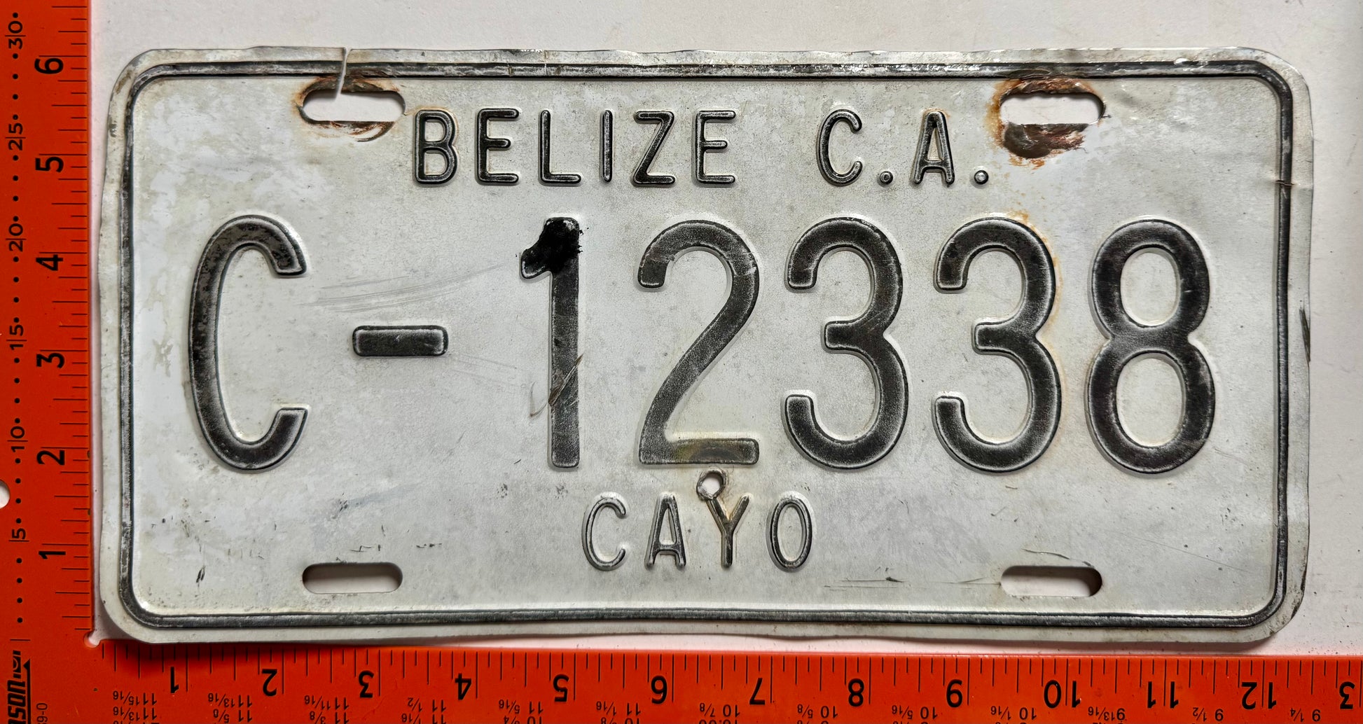 undated Belize #C-12338 Passenger License Plate