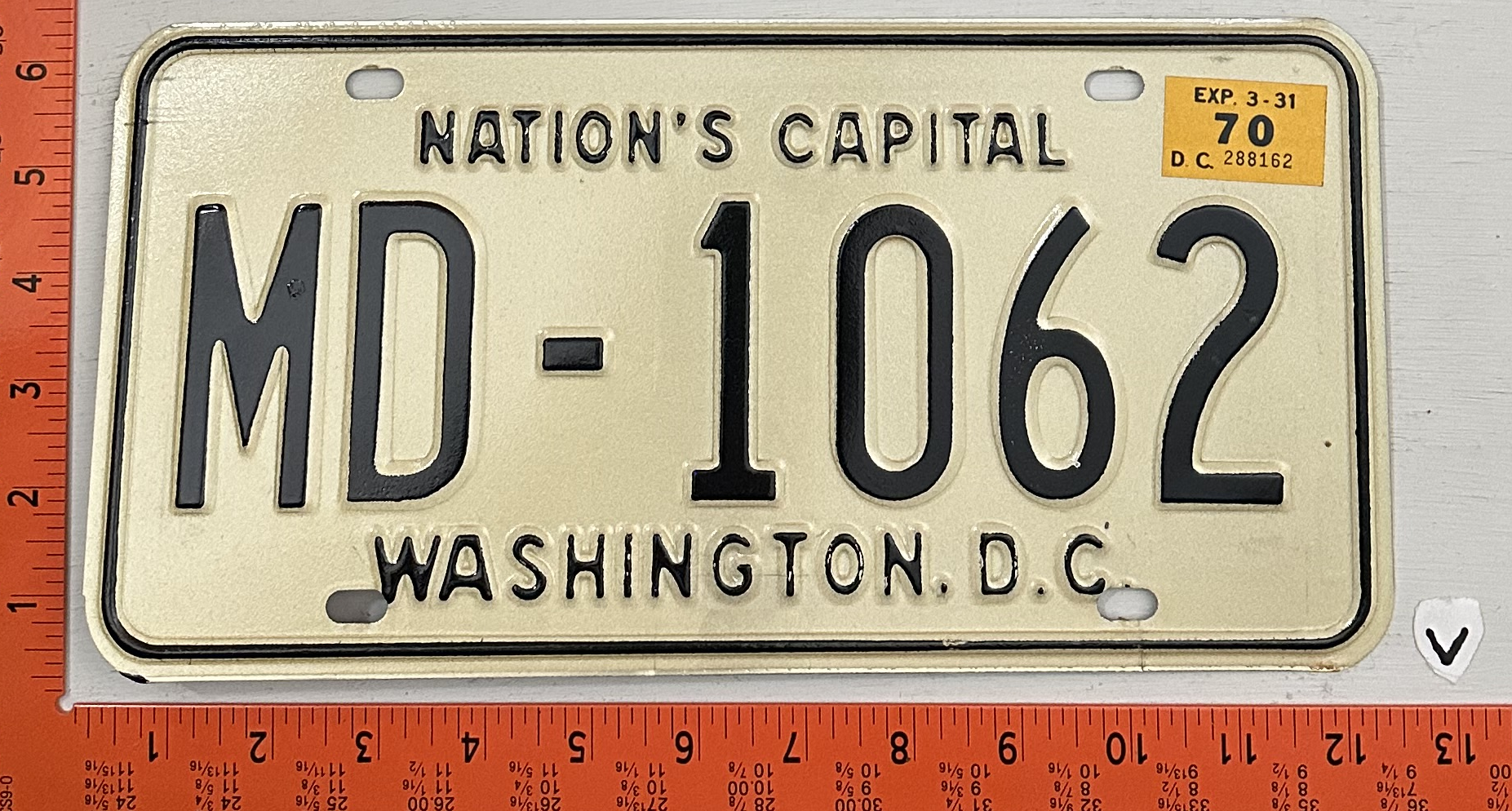 1970 Washington, DC #MD-1062 Medical Doctor License Plate