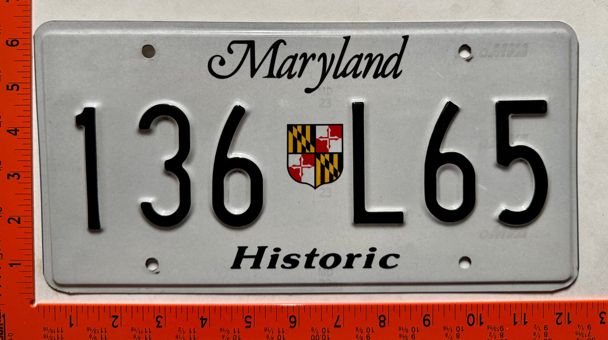 undated Maryland #136 L65 Historic License Plate