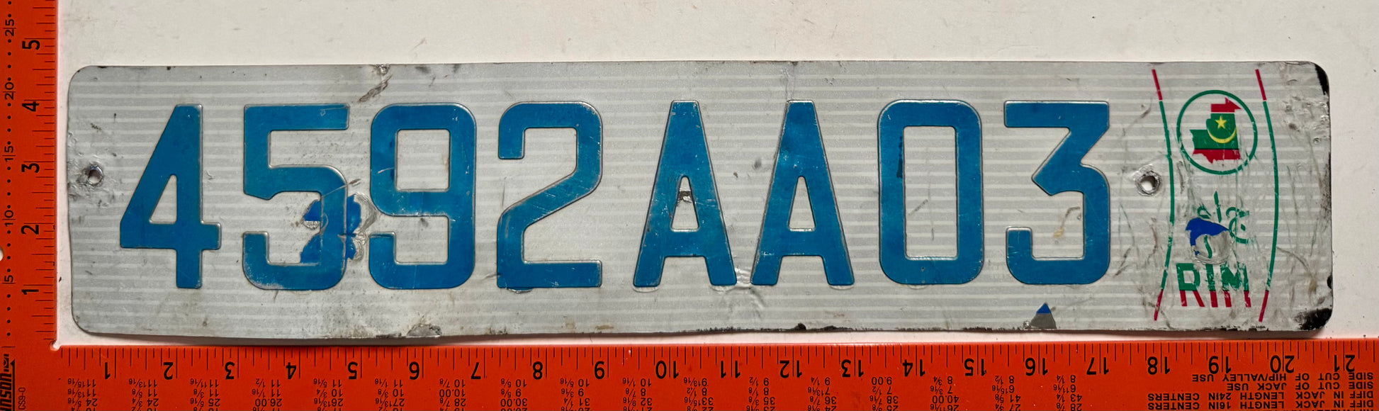 undated Mauritania #4592AA03 Passenger License Plate
