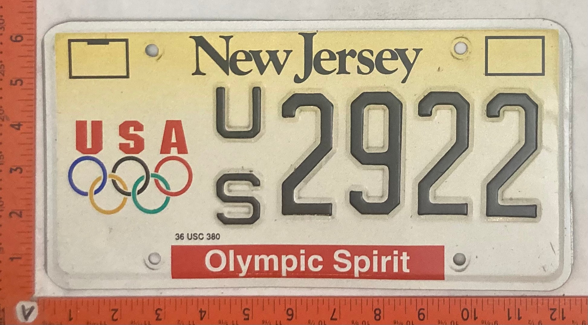 Undated New Jersey #U/S 2922 Passenger License Plate