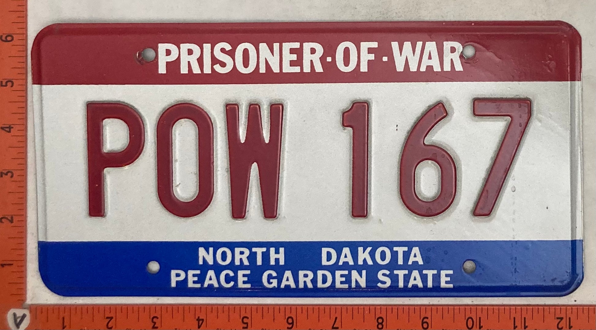 Undated North Dakota #POW 167 Prisoner of War Passenger License Plate