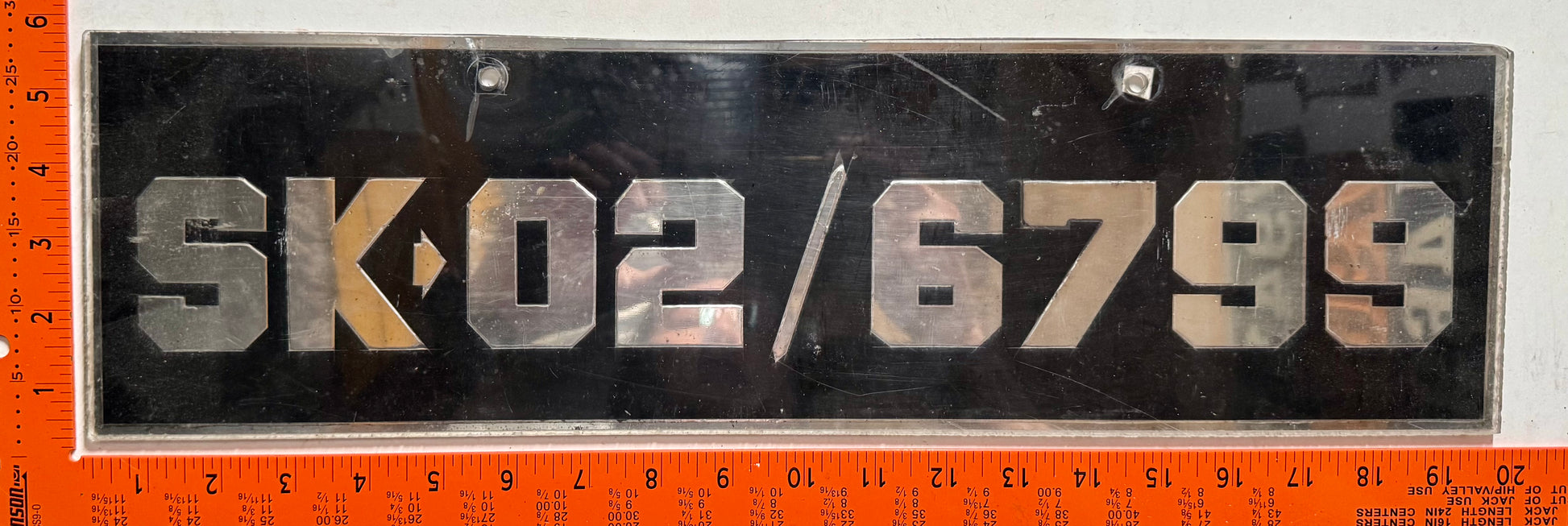 undated Sikkim, India #SK-02/6799 Passenger License Plate