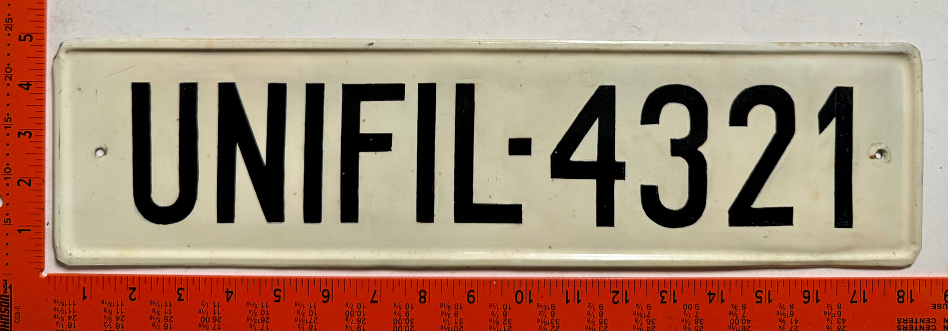 undated United Nations #UNIFIL-4321 Passenger License Plate