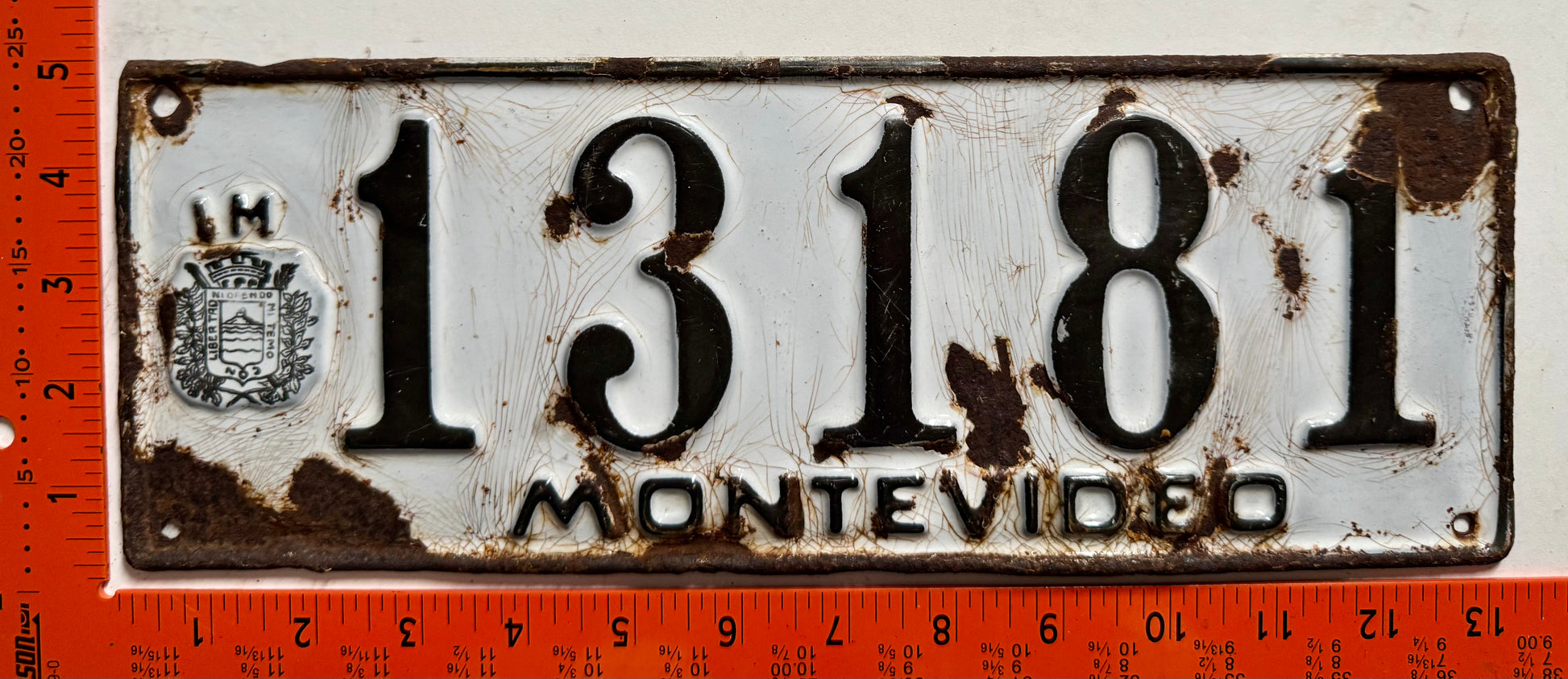 undated Uruguay #13181 Passenger License Plate (Porcelain)